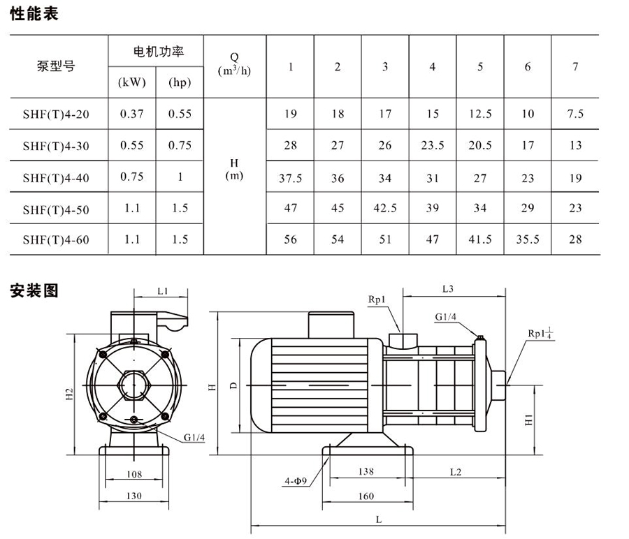 SHL/SHF/SHFT4為臥式多級非自吸多級離心泵,配加長軸電機。緊湊式結構使泵尺寸很小,軸向入口或徑向出口。